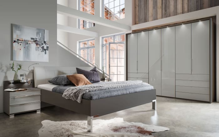 Schlafzimmer Loft, kieselgrau/Havanna-Dekor, 180 x 200 cm, Schrank 300 x 236 cm