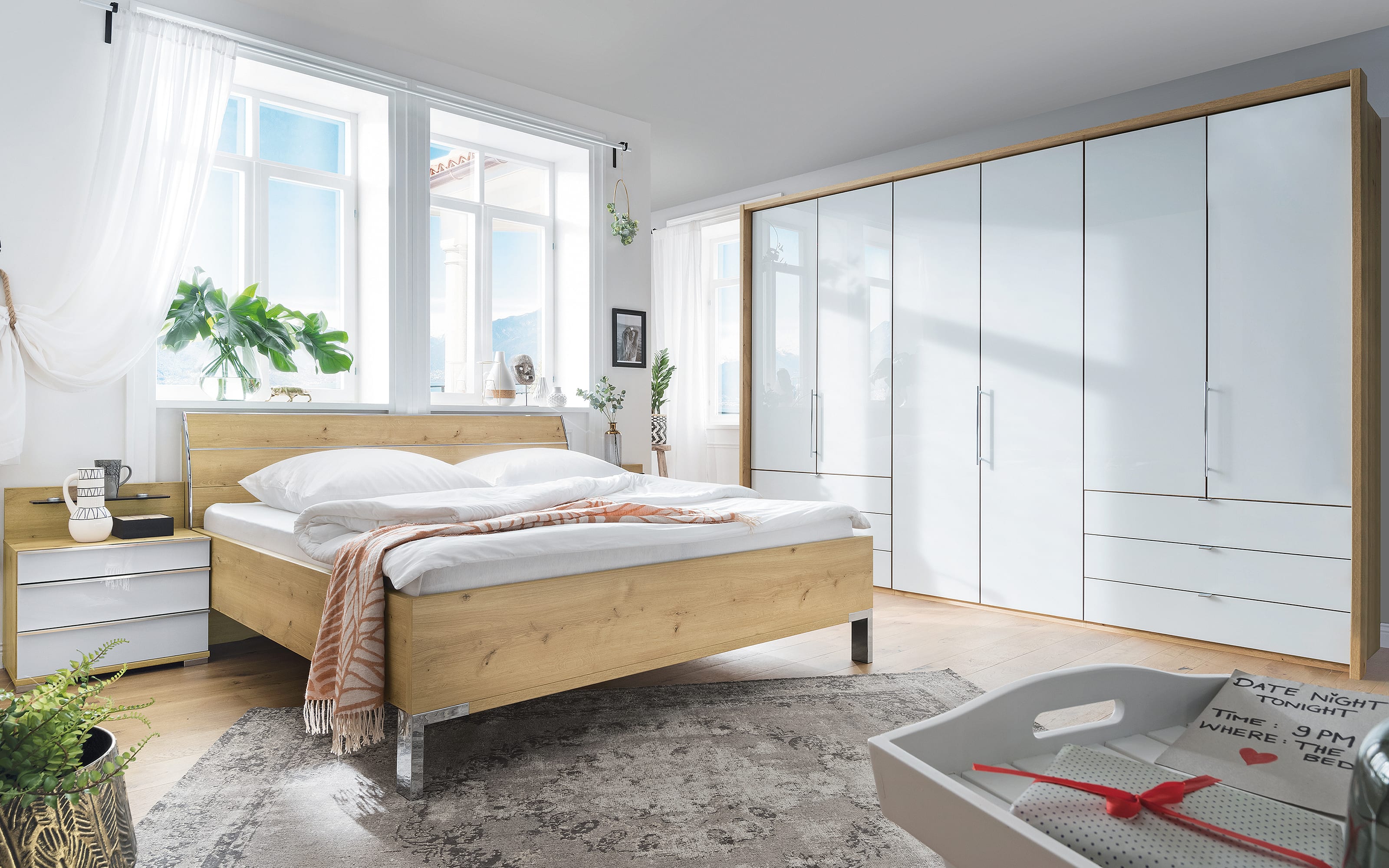 Schlafzimmer Loft, weiß/Bianco Eiche, 180 x 200 cm, Schrank 300 x 216 cm