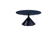 Ausführung der Tischplatte aus Sicherheitsglas in grau ( 10 mm ), formschönes Gestell aus Metall in schwarz. Durchmesser ca. 80 cm. Höhe ca. 40 cm.