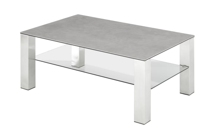 Ausführung der Tischplatte aus Keramik in grau, Ablagaplatte aus Sicherheitsglas, Gestell aus gebürstetem Edelstahl,