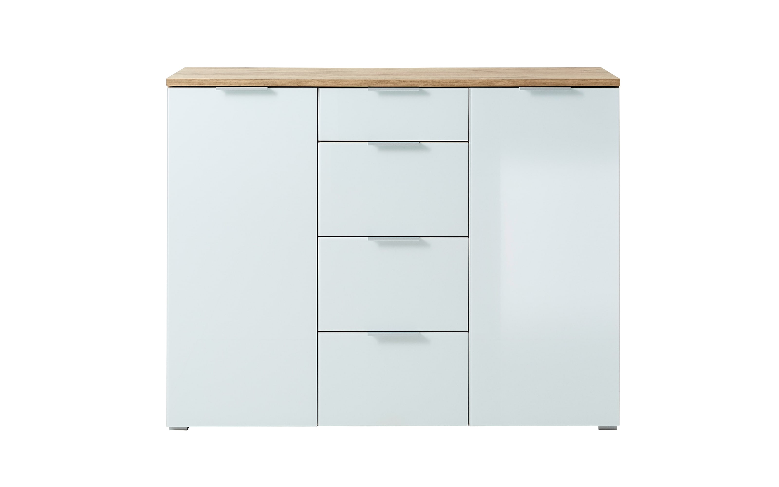 Kantengriffe aus Metall, 2 Türen mit Türdämpfer, 4 Einlegeböden, 4 Schubkasten mit Selbsteinzug, mit allen modernen Einrichtungsstilen kombinierbar und ein Eyecatcher in jedem Wohnzimmer,