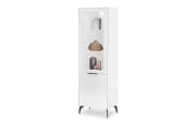 Ausführung der Front in Glas glänzend weiß lackiert, Korpus in weiß matt, 1 Tür mit Glasausschnitt, 2 Glaseinlegeböden, 1 fester Boden, 1 Einlegeboden,
