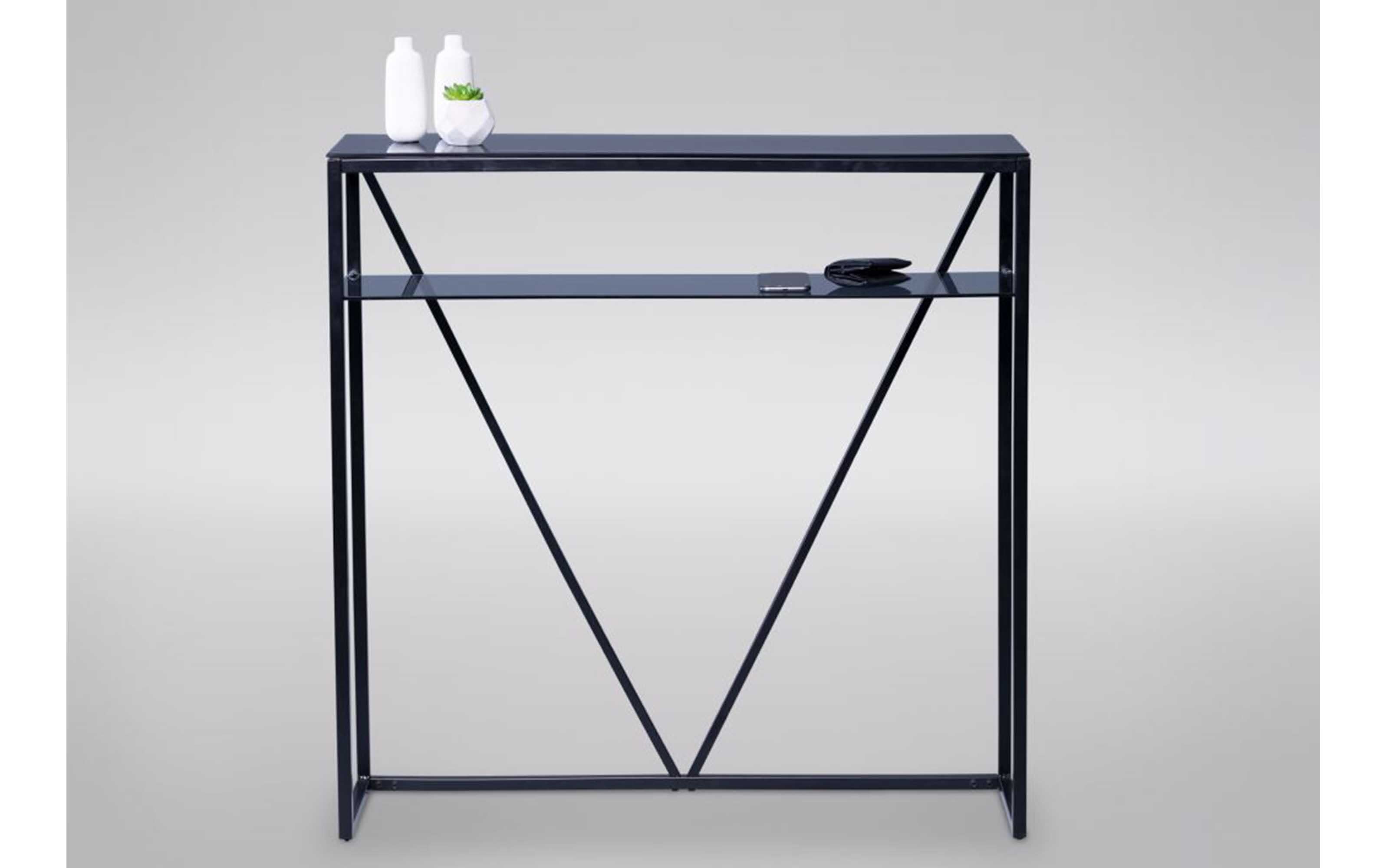 Ausführung mit 1 Deckplatte und 1 Ablageplatte aus Sicherheitsglas in grau, Gestell aus Metall in schwarz lackiert,