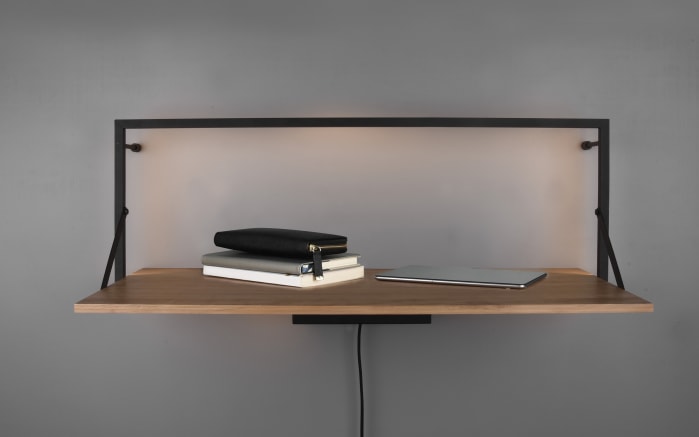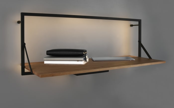 Ausführung in Holz-Nachbildung mit 1 Ablagefläche, Gestell aus Metall in schwarz lackiert, mit LED Stripe, 10 W, Flex Connect,