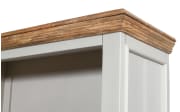 Ausführung in sandfarbig, Absetzung in mangoholz, teilmassiv, Griff aus Eisen in schwarz, 2 Türen, 3 Ablagen, 1 Einlegeboden,