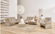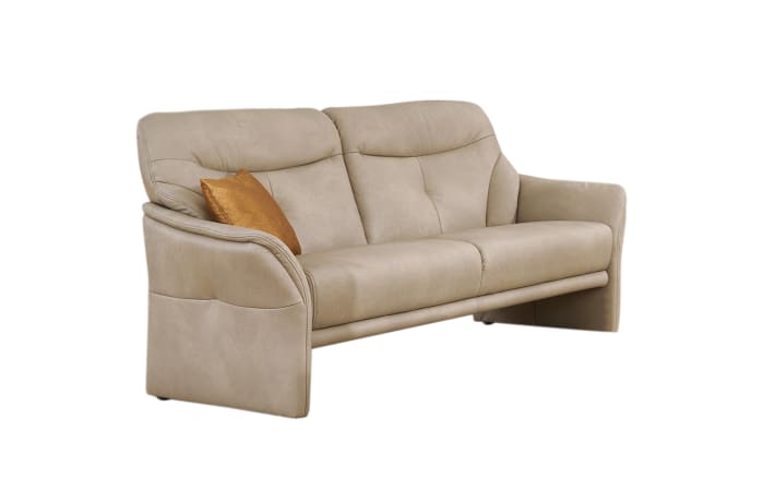 Moderner 3-Sitzer mit echt Lederbezug Soft Nappa in der Farbe Island, Polsterung mit Formasoft Polyschaum, Sitzhärte Medium,