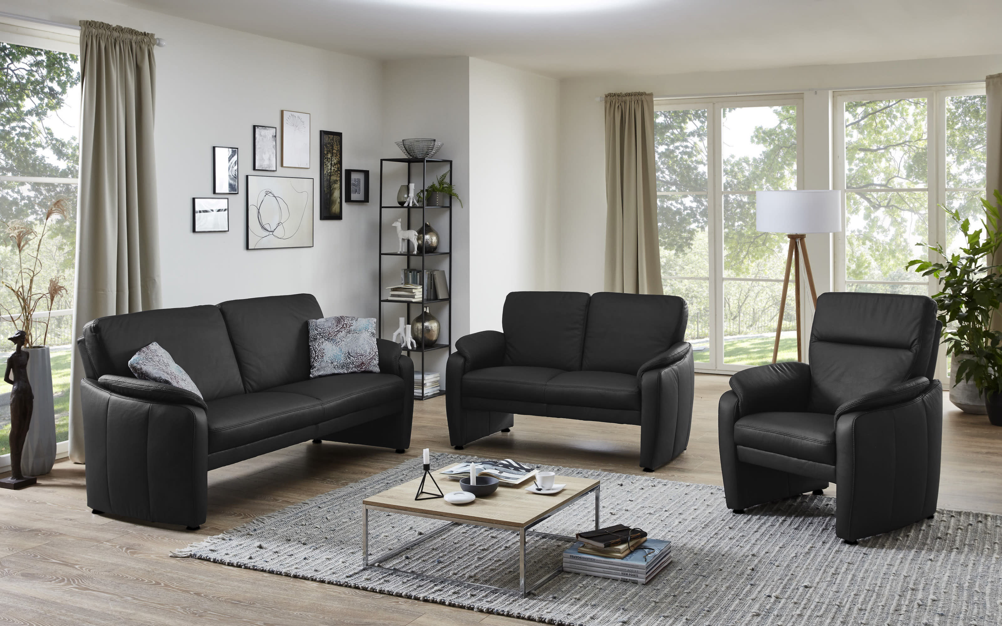 Ihr Zuhause nutzen Sie mit dem Sofa Bornholm ideal aus. Für maximalen Sitzkomfort verfügt die schwarze Couch über einen Wellenfederkern. Sie punktet mit der Qualität des verwendeten Leders. Dank der herausragenden Materialauswahl ist das Modell Bornholm pflegeleicht beschaffen. Die Couch besitzt eine Gesamthöhe von 90 cm und eine Tiefe von 85 cm. Sie hat eine Sitzhöhe von 46 cm und lädt mit der Sitztiefe von 53 cm zum Relaxen ein. Diese Couch bietet Ihnen Platz zum Die-Seele-baumeln-lassen, Schmökern oder Fernsehen.