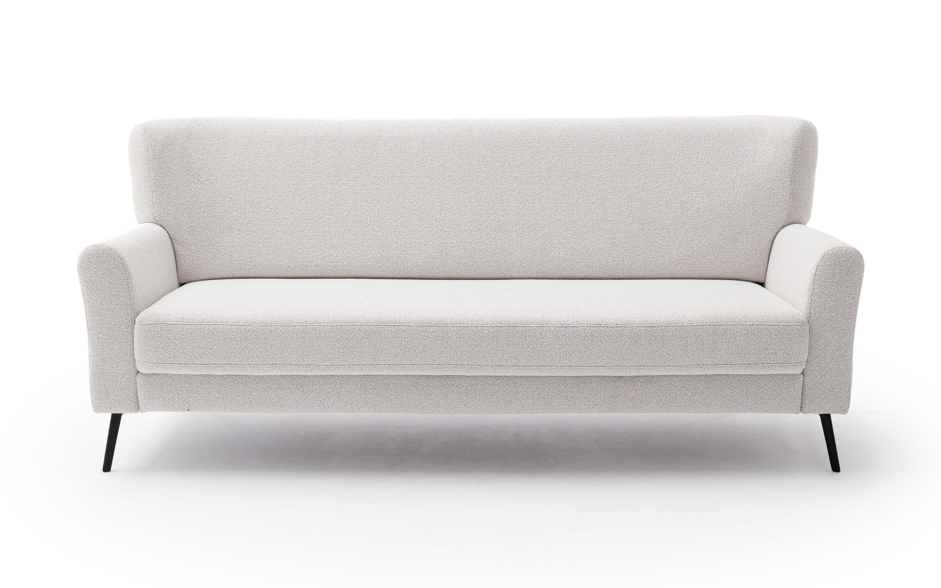 Moderner 3 Sitzer mit Stoffbezug in Silver/Cream, komfortable PUR-Schaum Polsterung auf Wellenfedern, Rundfüße aus Metall in Schwarz,