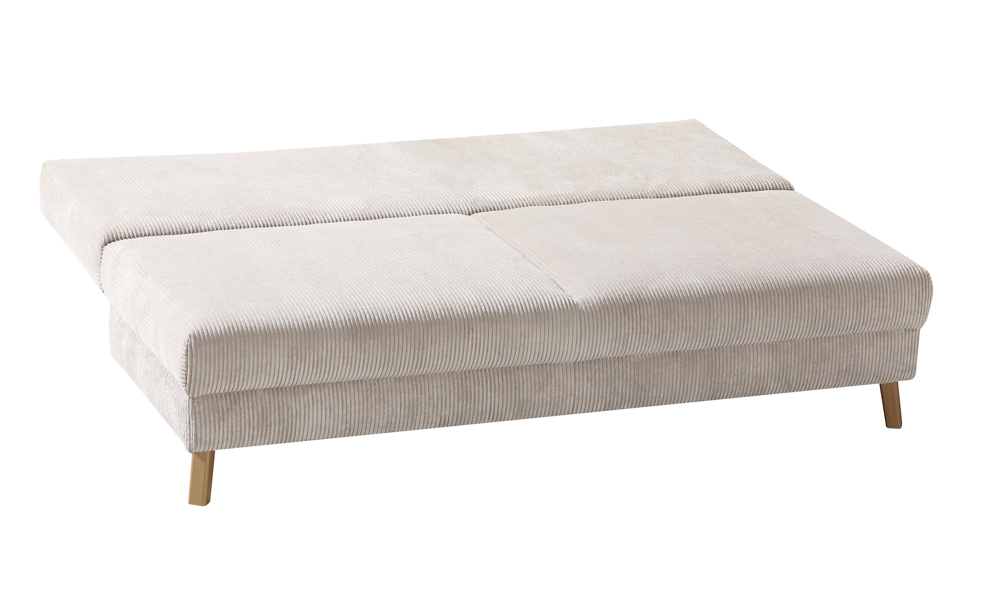 Ausführung in Stoffbezug 55-6576, Cord natur, mit Rücken- und Armlehnkissen, inklusive geräumiger Bettkasten.