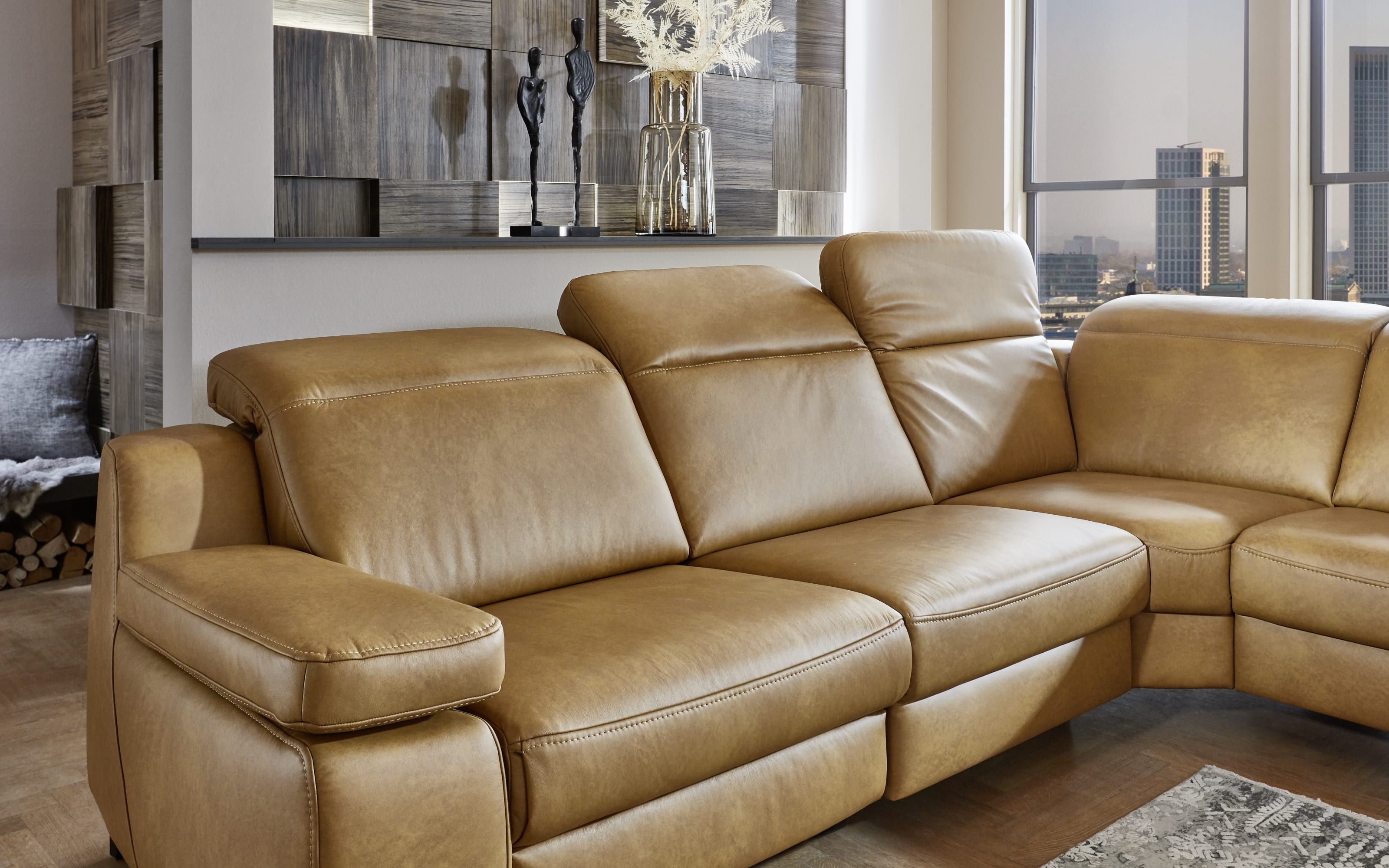 Leder Wohnlandschaft HU-RL16013, gelb, inkl. Kopfteilverstelungen