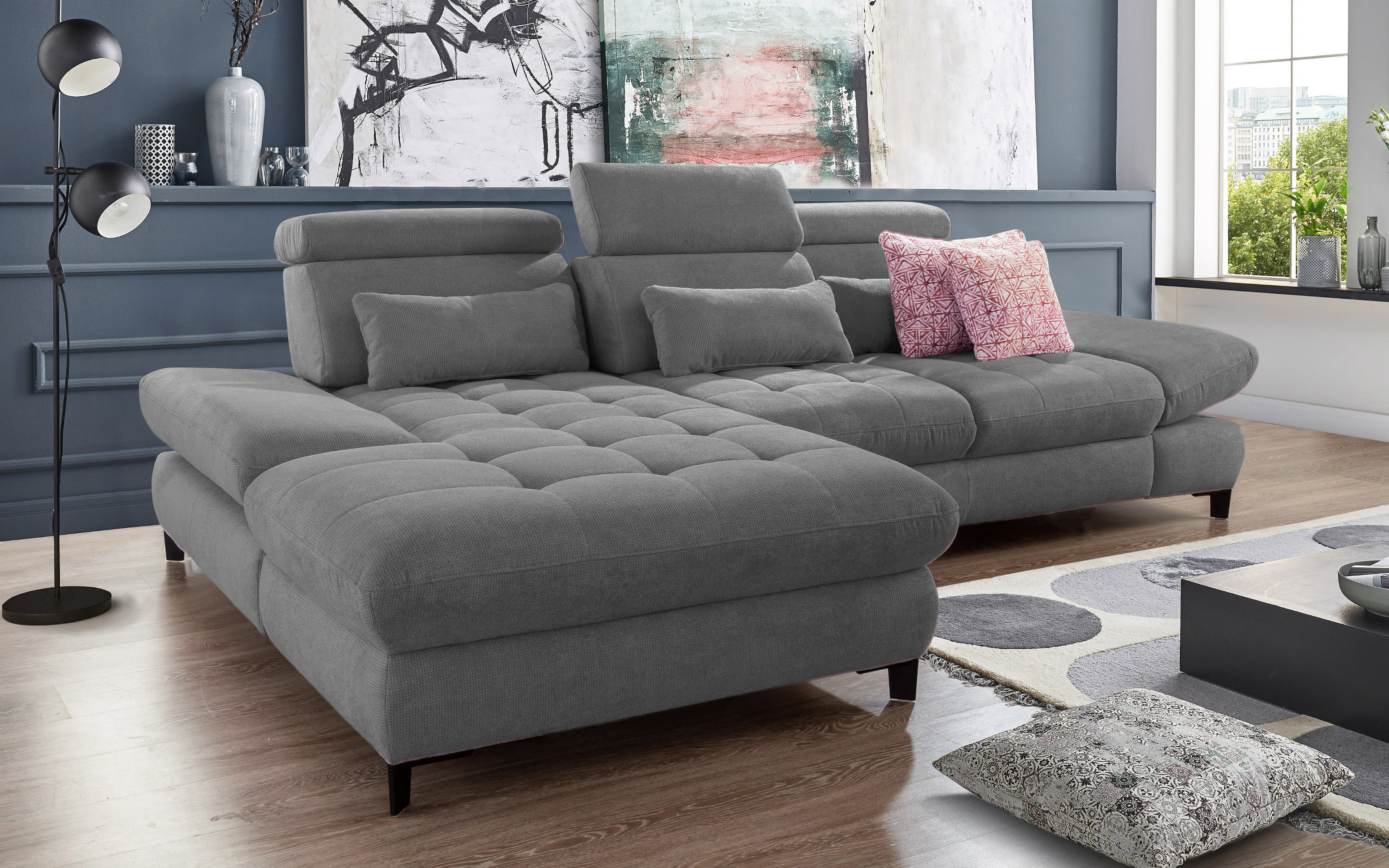 Wohnlandschaft Carolina, grau, inkl. Schwenkrücken