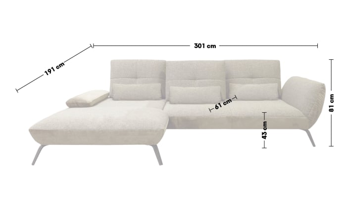Wohnlandschaft Dover in olive / khaki, Longchair links, inklusive Schwenkrücken Im Artikel enthalten