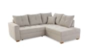 Rücken echt bezogen, Recamiere kann einmalig links oder rechts montiert werden, Füße aus Massivholz, mit praktischer Gästebettfunktion und