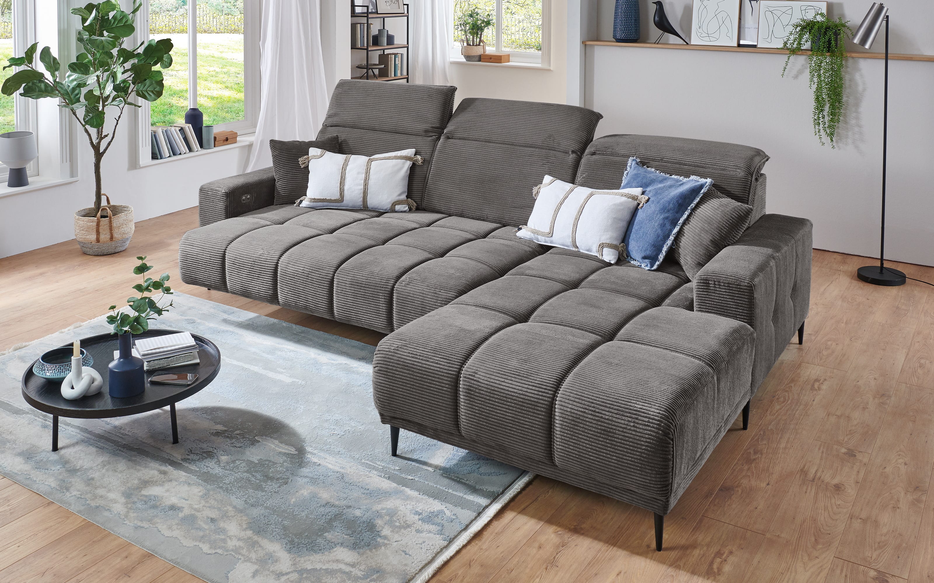 Wohnlandschaft Livorno, dunkelgrau, inkl. Funktionen, Ottomane rechts