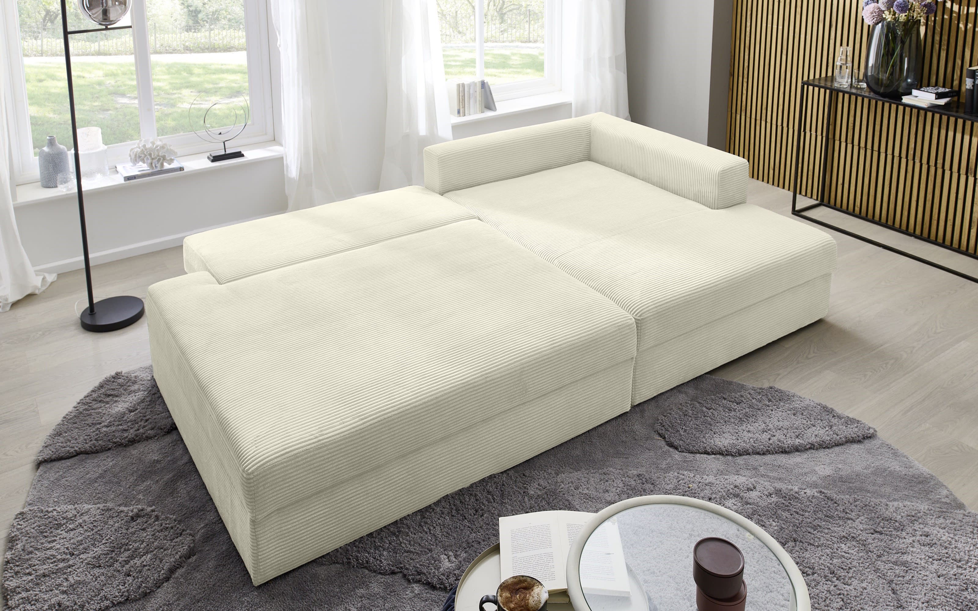 Wohnlandschaft Splash, creme, Ottomane rechts, inkl. Funktionen