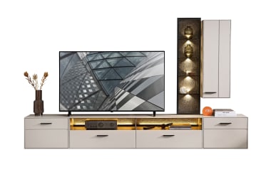 Wohnwand Lots, creme/Steinfurnier, inkl. Softclose Funktion