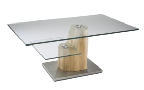 Mittelschrank Kera Plan, polarweiß Hochglanz/Eiche natur Nachbildung