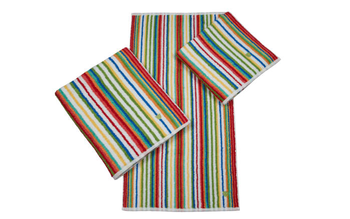 Dieses Duschtuch aus Baumwolle in multicolor-gestreift rot, ist weich und hautfreundlich und ein echter Hingucker in jedem Badezimmer. Breite x Länge ca. 70 x 140 cm.