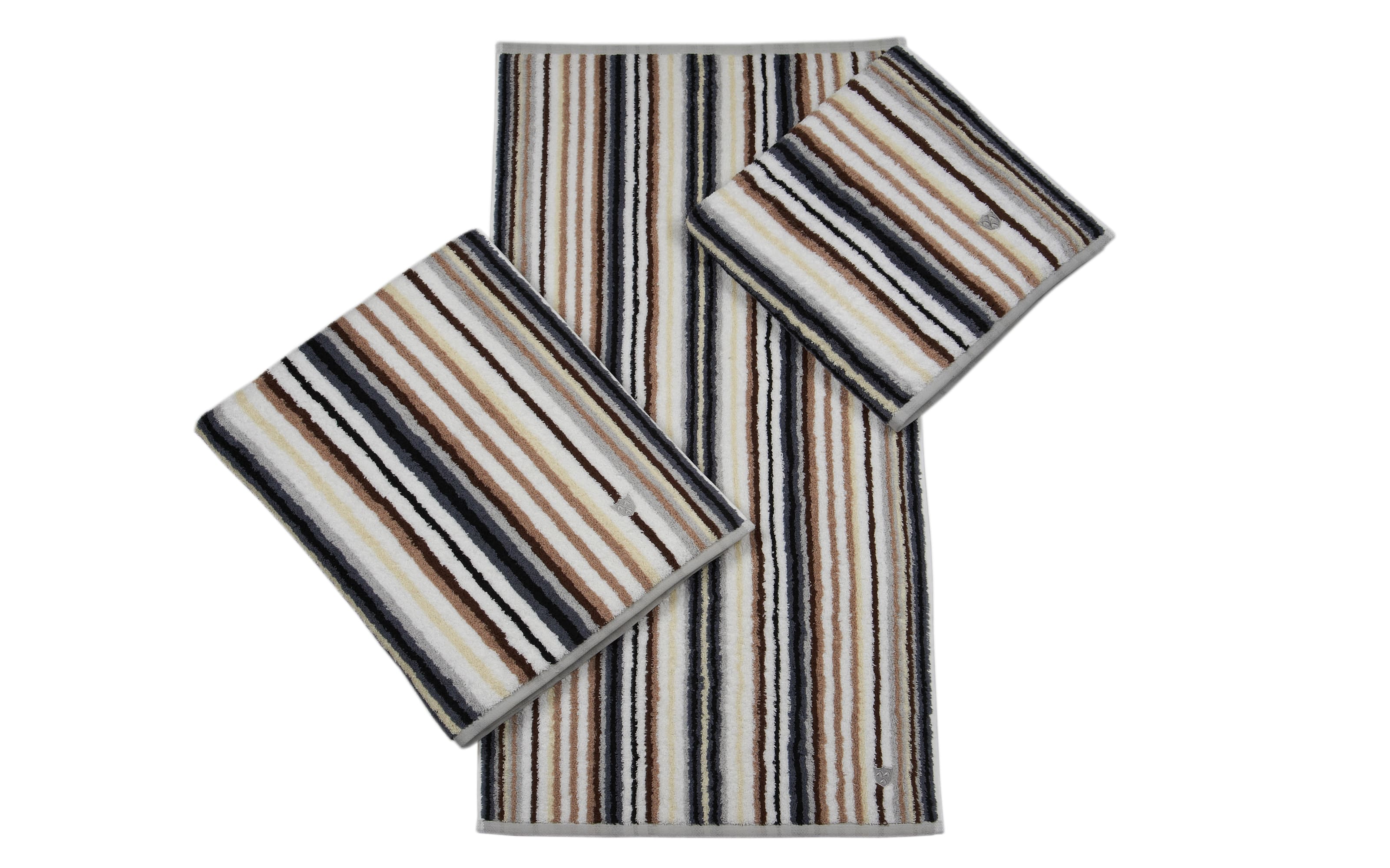 Dieses Handtuch aus Baumwolle in multicolor-gestreift anthrazit ist weich und hautfreundlich.