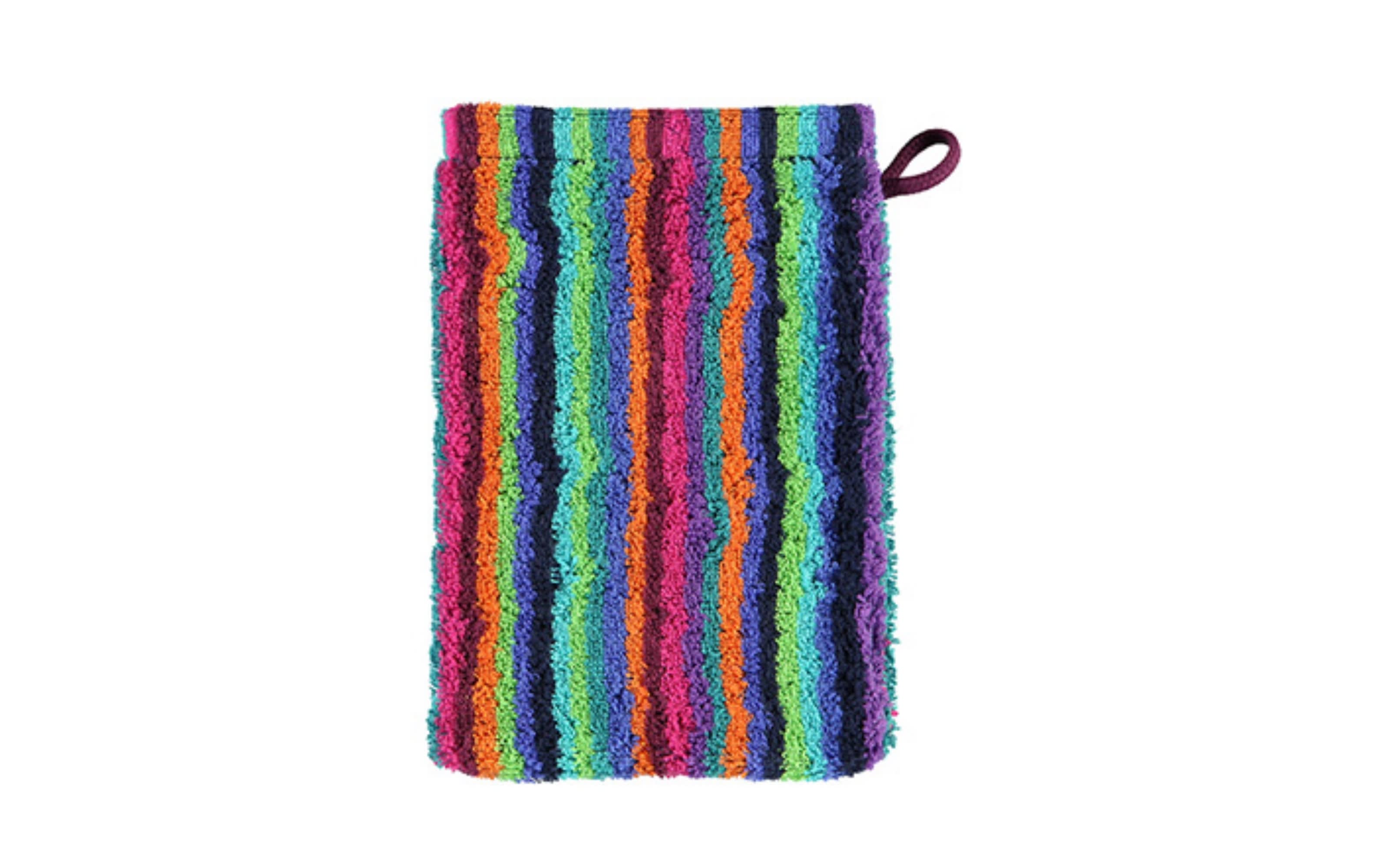Waschhandschuh aus der Serie Lifestyle Streifen in der Farbe multicolor dunkel, 100 % feine Baumwolle, weiche und hautfreundliche Qualität, trocknergeeignet.