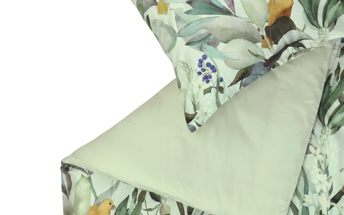 Satin Bettwäsche, grün floral, 155 x 220 cm
