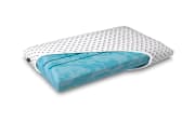 Kissen aus XVisco-Kaltschaum-Hybrid in einem Stoffbezug und durch eine zusätzliche Schaumplatte höhenverstellbar von 8 auf 10 cm,
