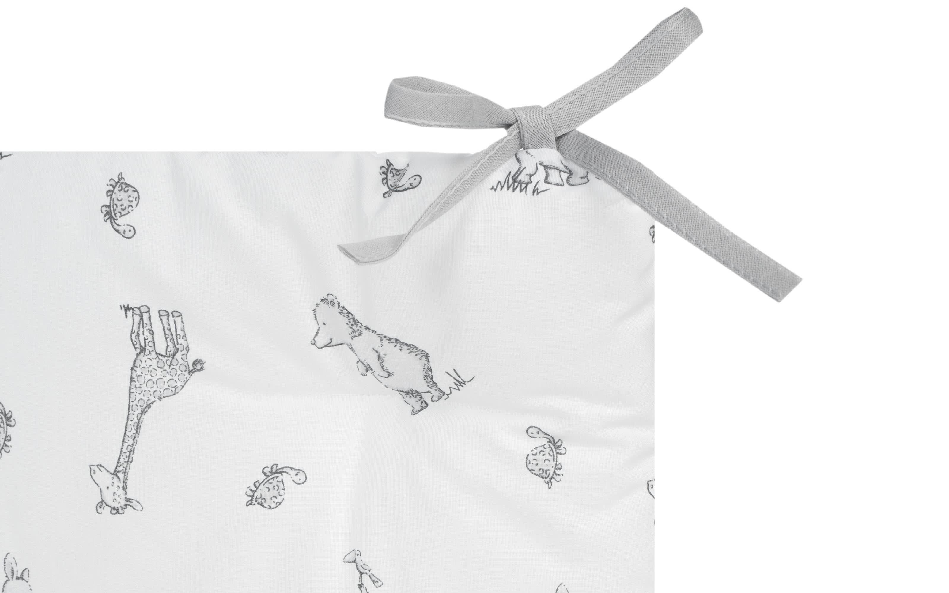 Ausführung in weiß mit Muster Safari, Befestigung durch Bindebänder möglich, bis 30°C waschbar,