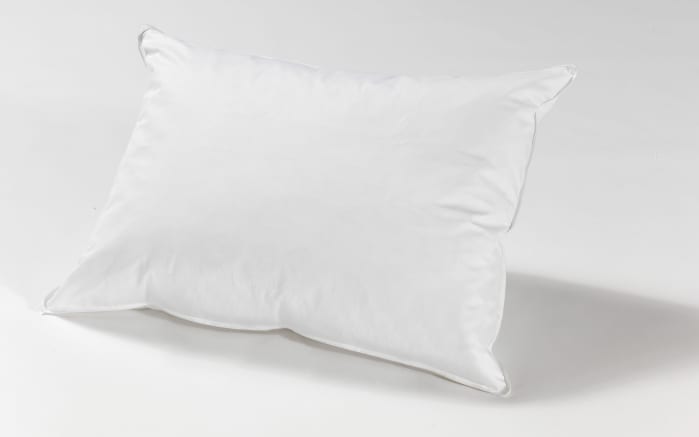 Weißes Füllkissen mit Bezug aus 100 % Baumwolle und Füllung aus 100 % Federn. Das Füllgewicht beträgt 680 g.